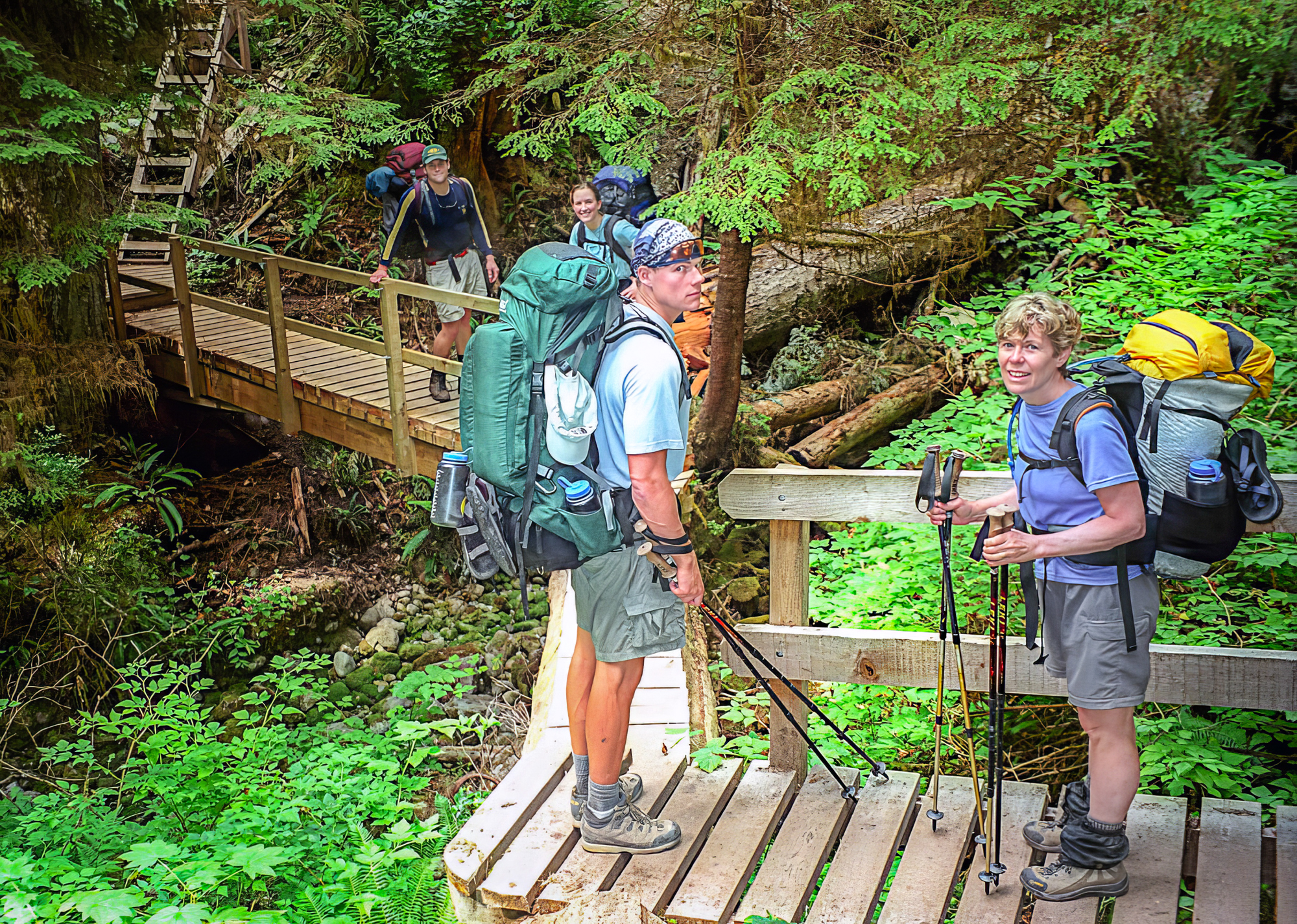 As we embarked on our journey to the West Coast Trail on Vancouver Island, we couldn’t help but feel an overwhelming sense of excitement and anticipation. This trail has been on our bucket list for years, and finally, we were joined by our son Eric. We boarded a shuttle bus from Victoria to the trailhead near Bamfield, BC, where we met up with Jonathan, Lindsey and Amy our hiking companions.