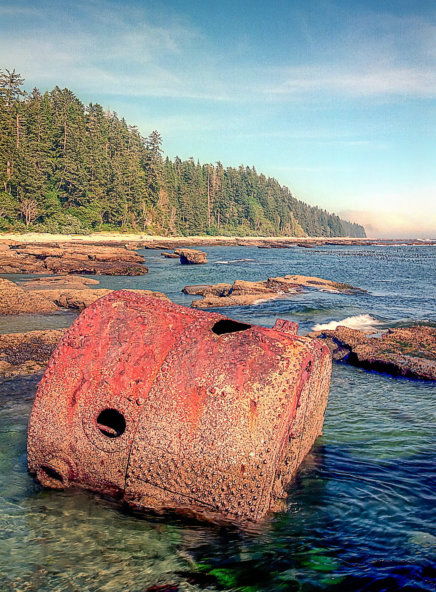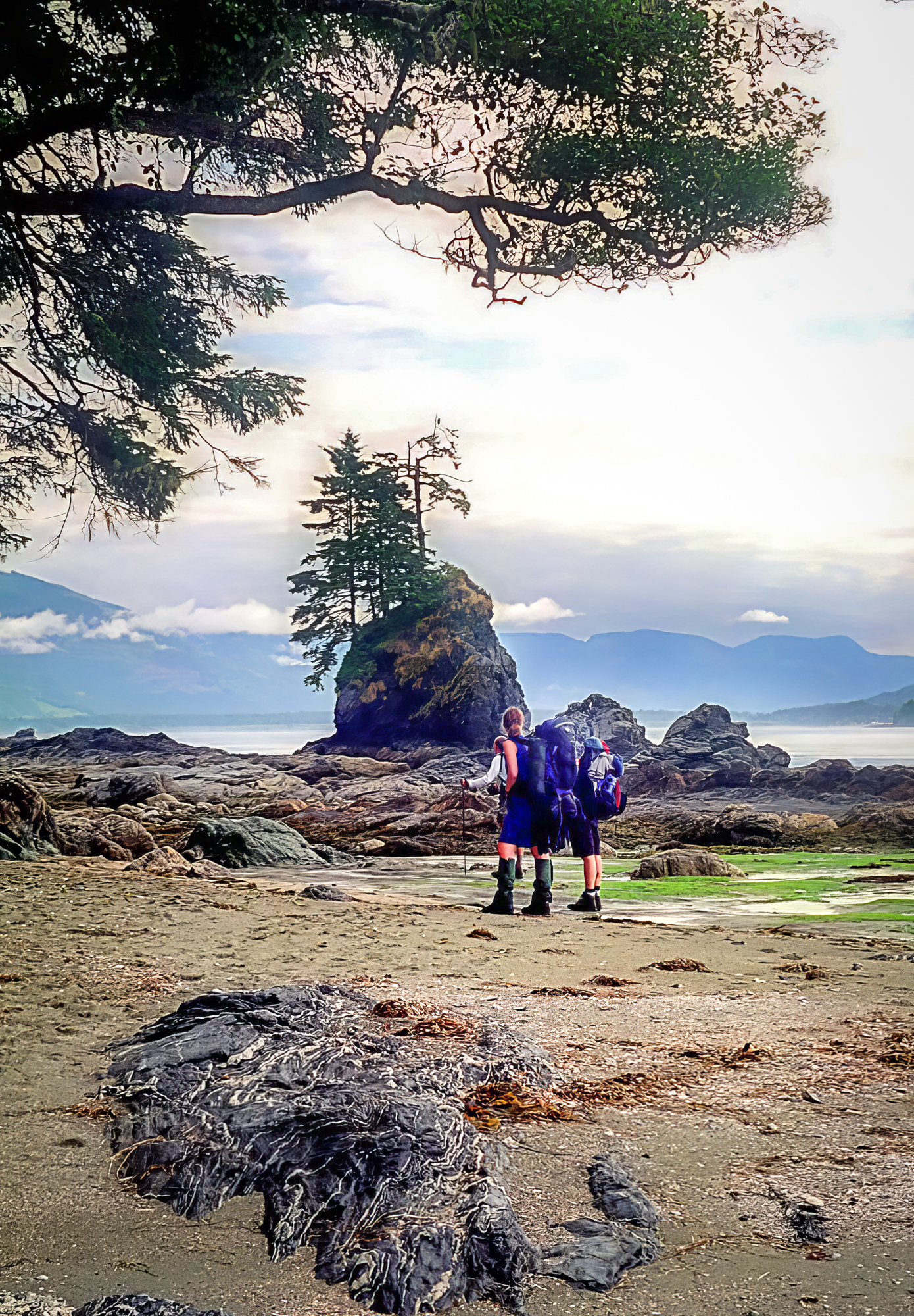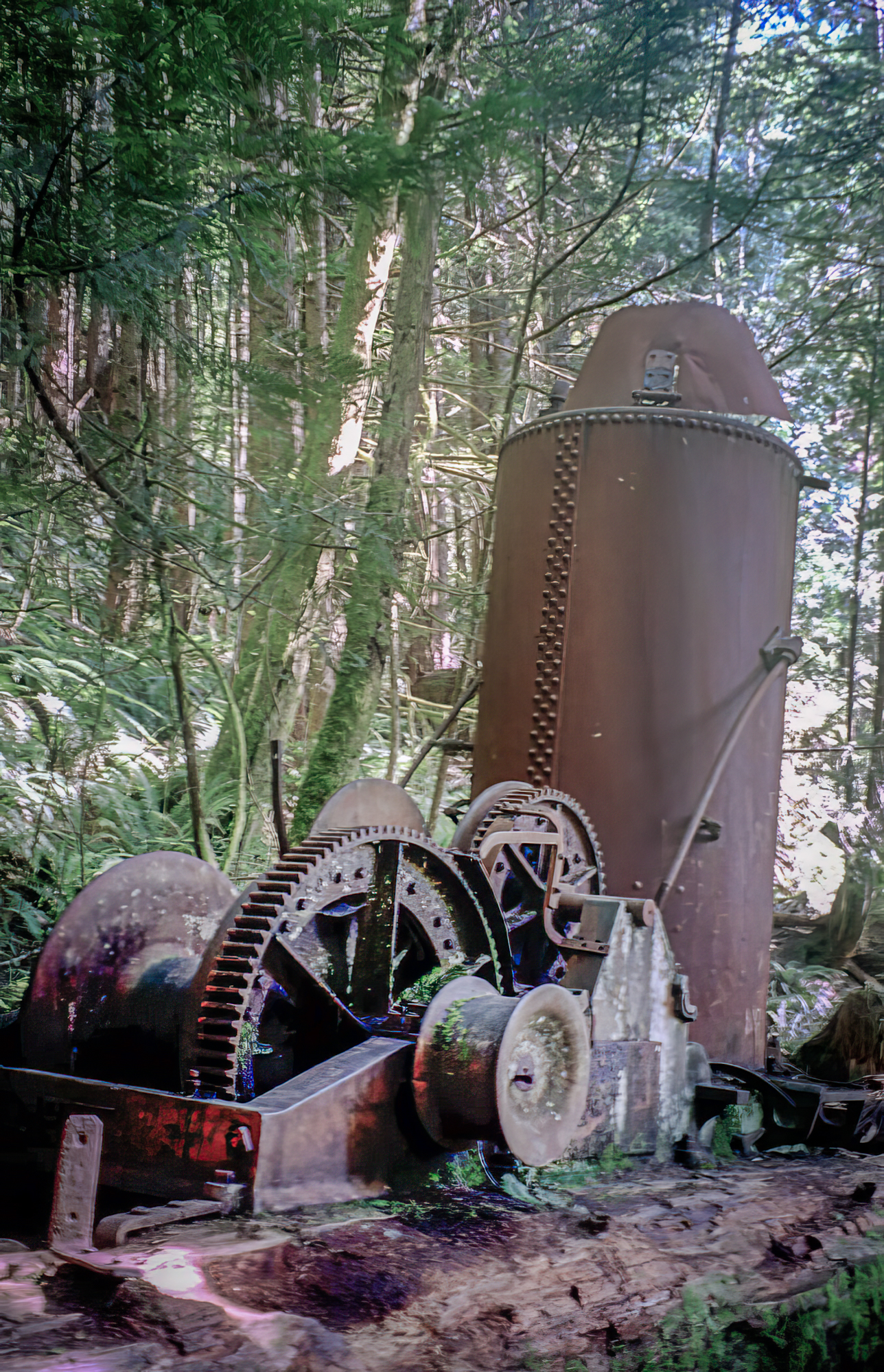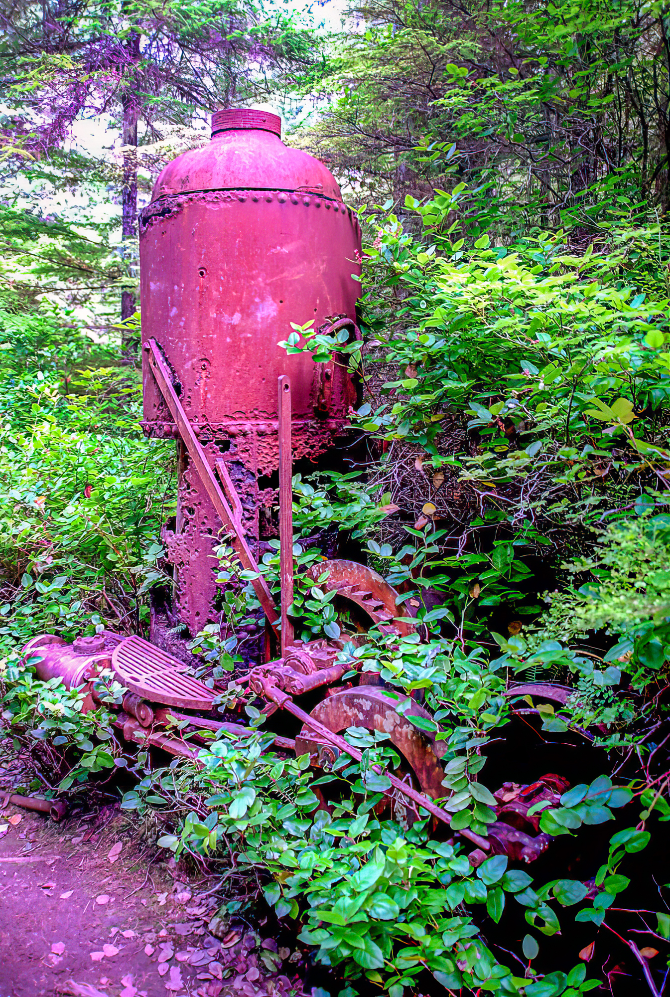 The final day of journey along the West Coast Trail dawned, and with a mix of excitement and a tinge of nostalgia, we rose early to embark on the last leg of our adventure towards Port Renfrew. Leaving the sandy beach behind, the trail led us uphill, guiding us back into the rainforest. As we ascended, the lush greenery enveloped us, providing a refreshing respite from the sun’s warm rays. Towering cedar trees and a dense undergrowth painted a vibrant tapestry of nature’s bounty. Along the trail, we encountered several derelict donkey engines, silent witnesses to the logging history that had shaped this land. These remnants stood as humble reminders of the human endeavors that had once echoed through these ancient forests.