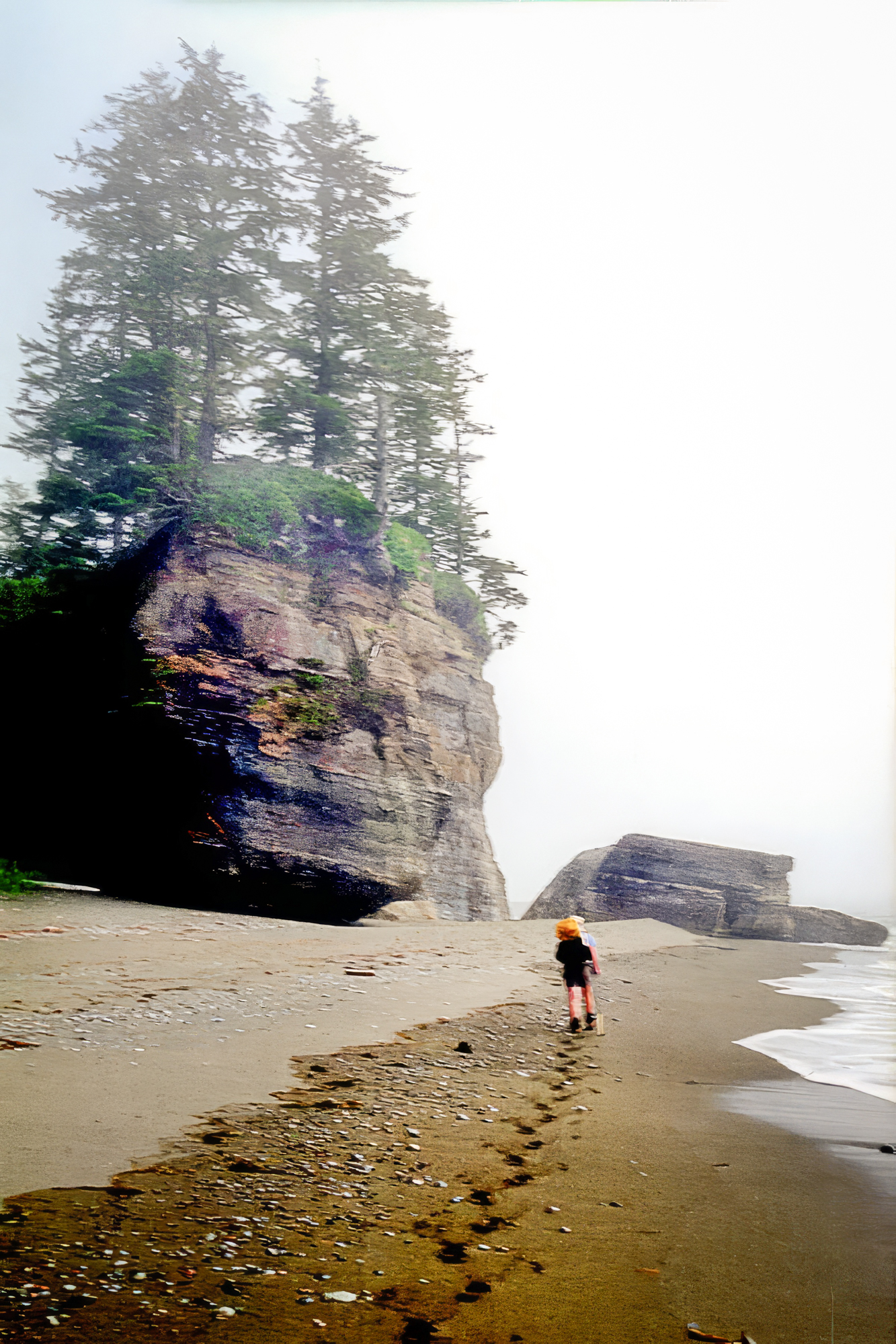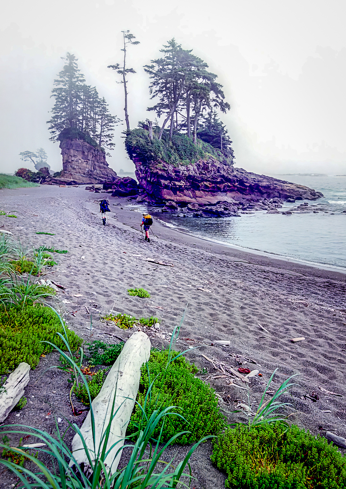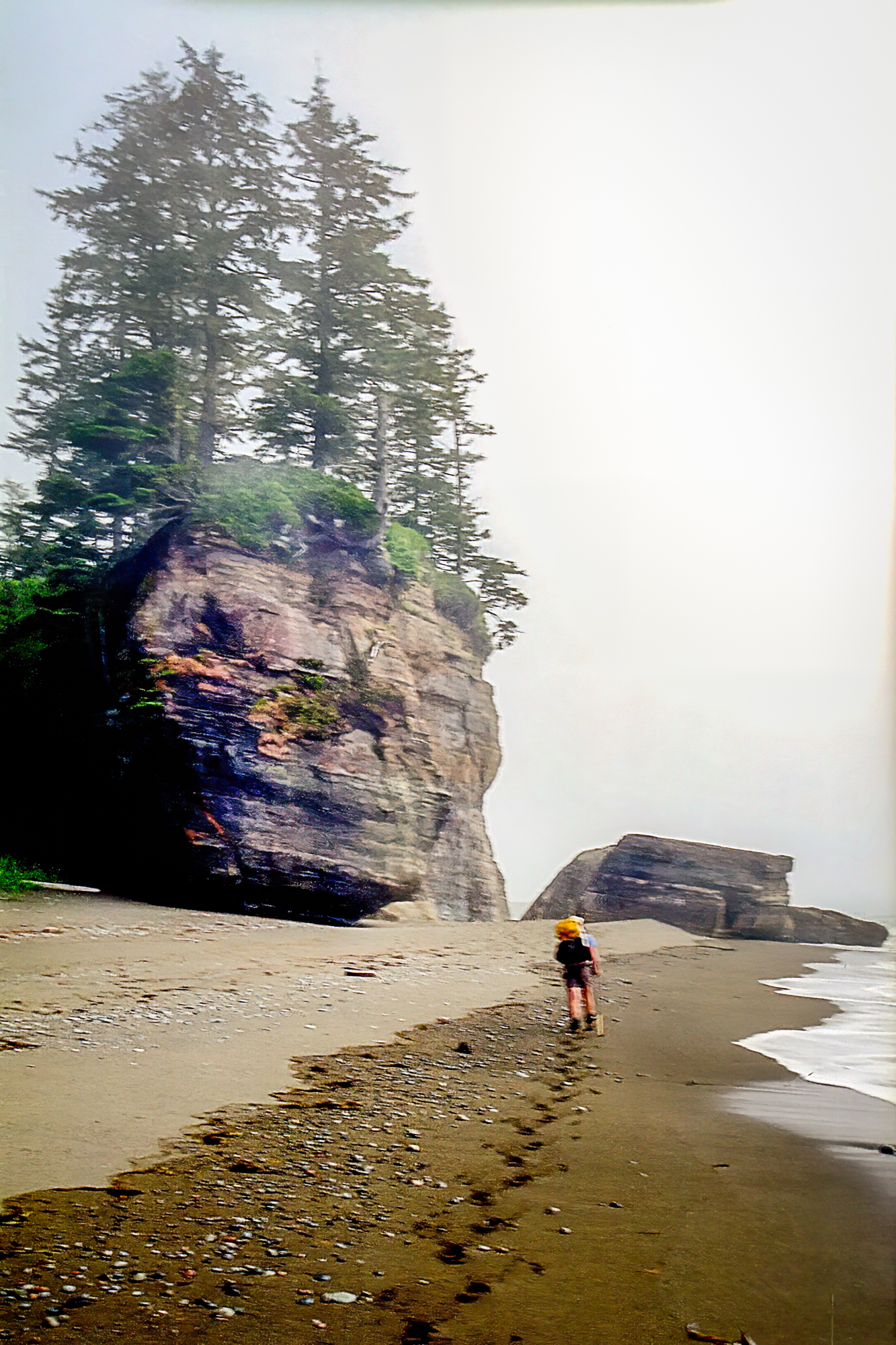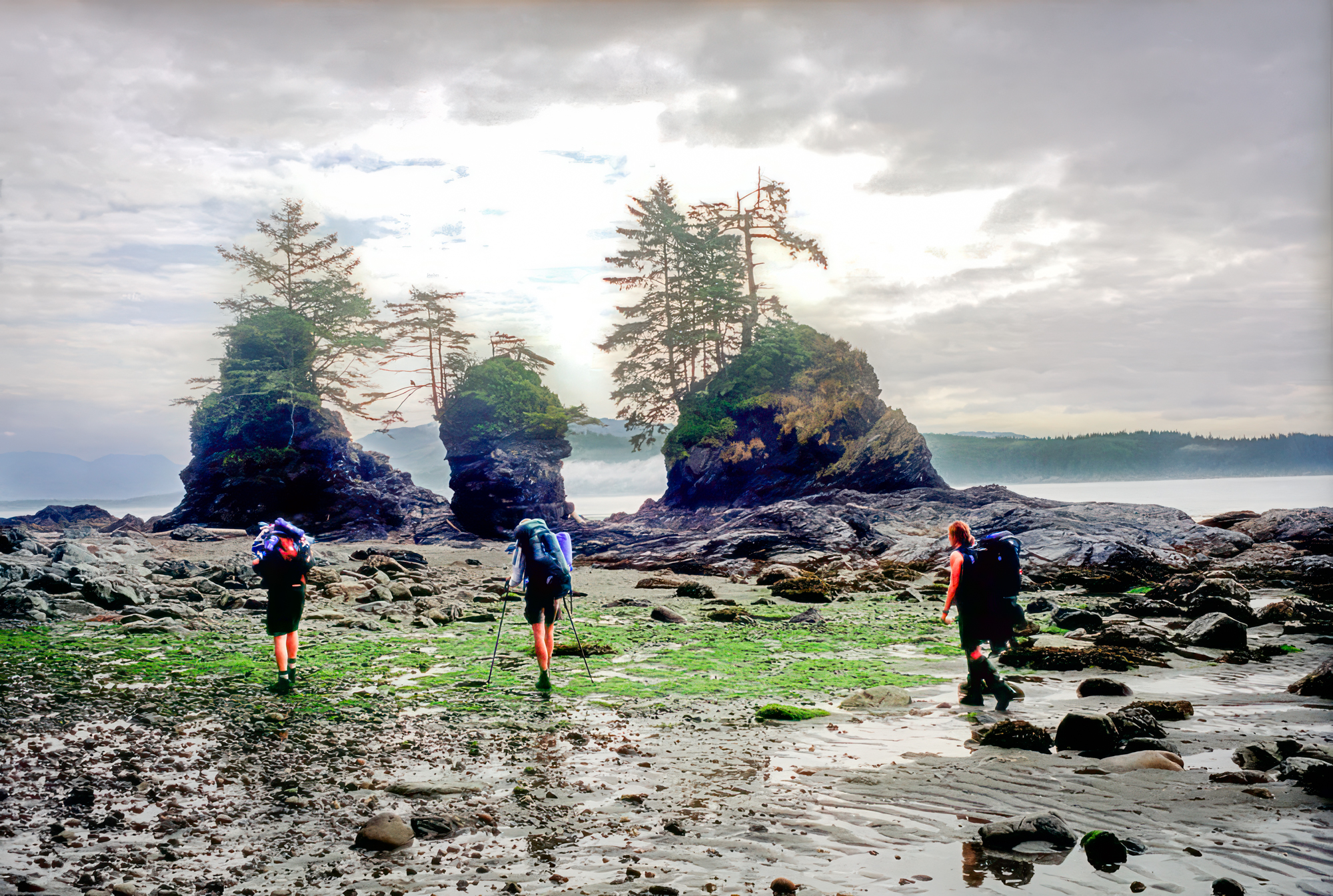 The final day of journey along the West Coast Trail dawned, and with a mix of excitement and a tinge of nostalgia, we rose early to embark on the last leg of our adventure towards Port Renfrew. Leaving the sandy beach behind, the trail led us uphill, guiding us back into the rainforest. As we ascended, the lush greenery enveloped us, providing a refreshing respite from the sun’s warm rays. Towering cedar trees and a dense undergrowth painted a vibrant tapestry of nature’s bounty. Along the trail, we encountered several derelict donkey engines, silent witnesses to the logging history that had shaped this land. These remnants stood as humble reminders of the human endeavors that had once echoed through these ancient forests.