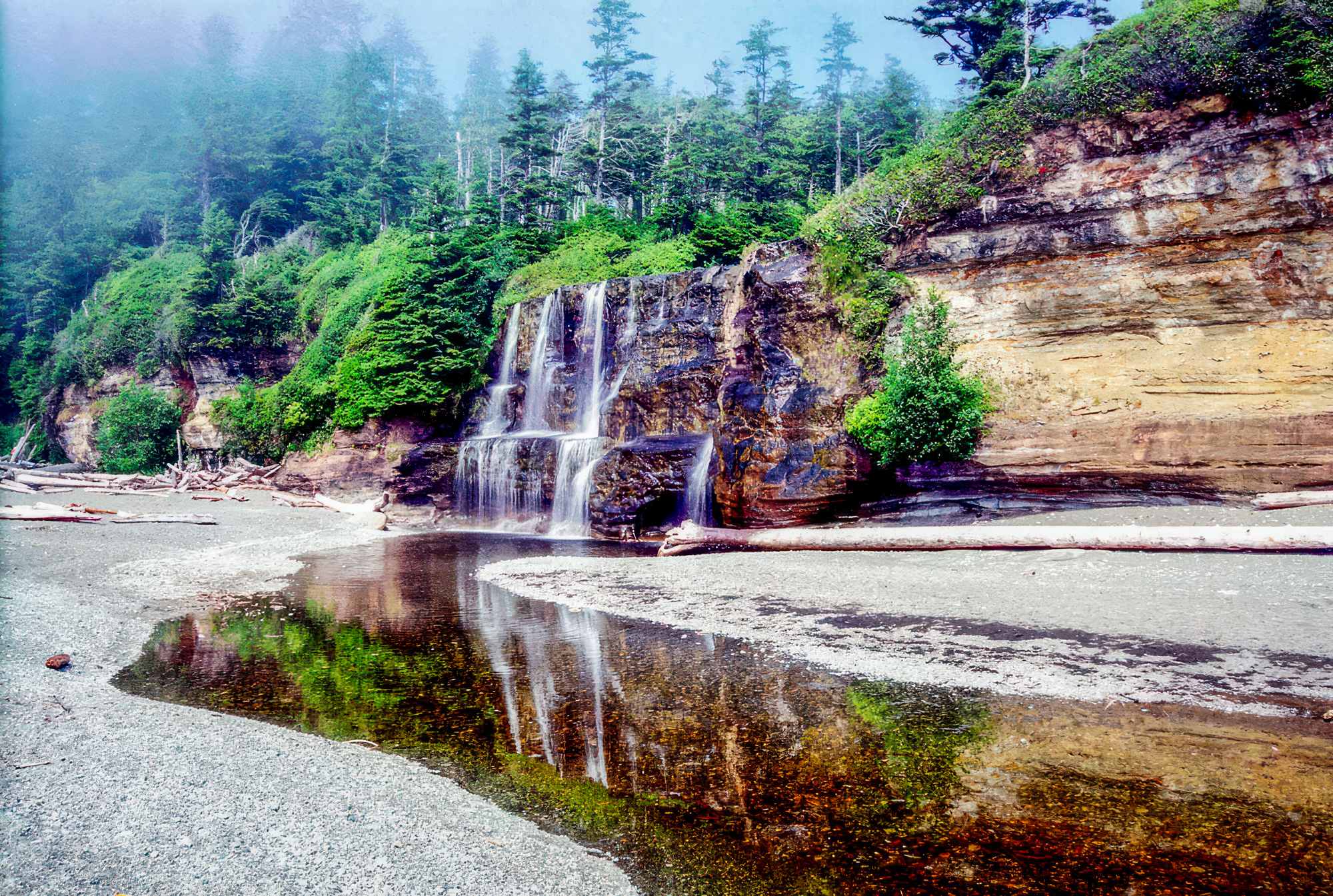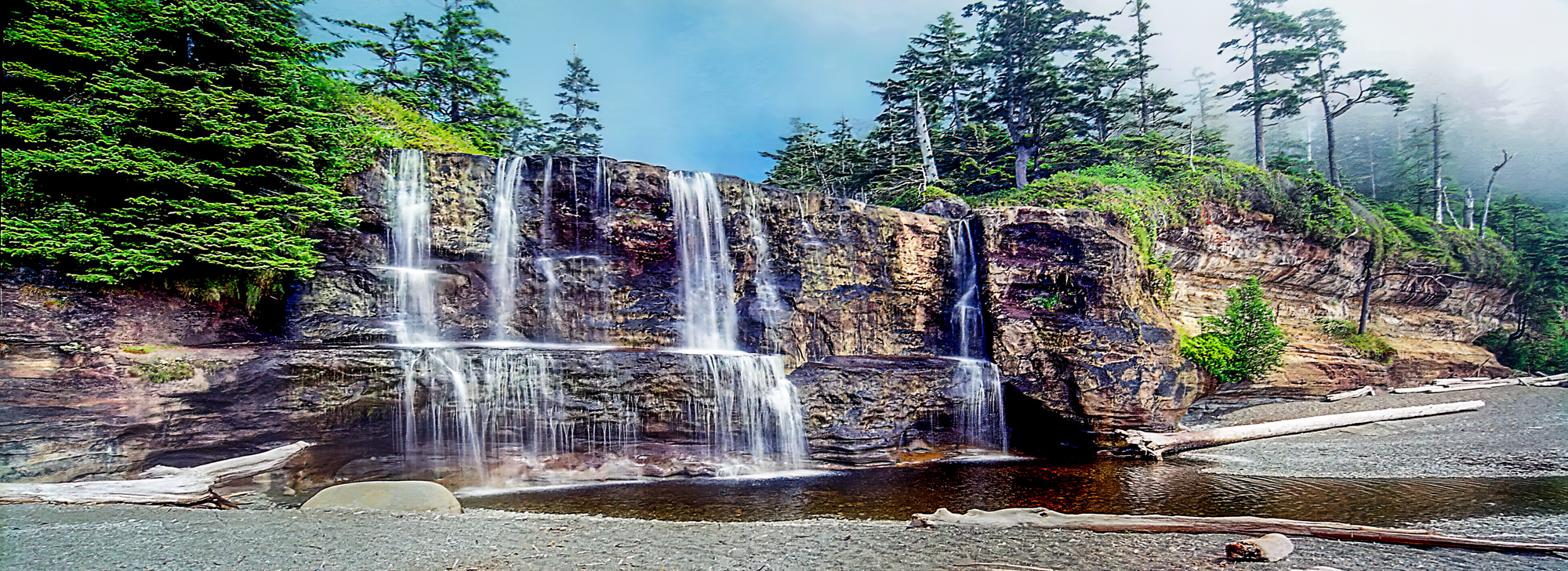Just when we thought our day on the West Coast Trail couldn’t get any more captivating, we stumbled upon a breathtaking natural wonder that left us spellbound—the mesmerizing Tsusiat Falls. This cascading marvel, nestled within the untamed wilderness, is a sight to behold.