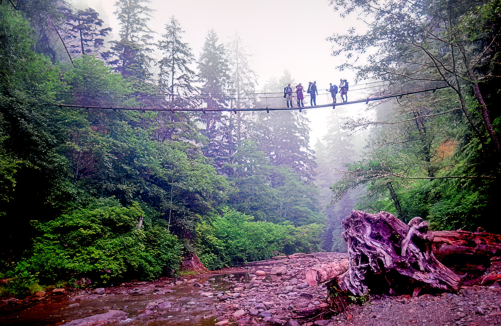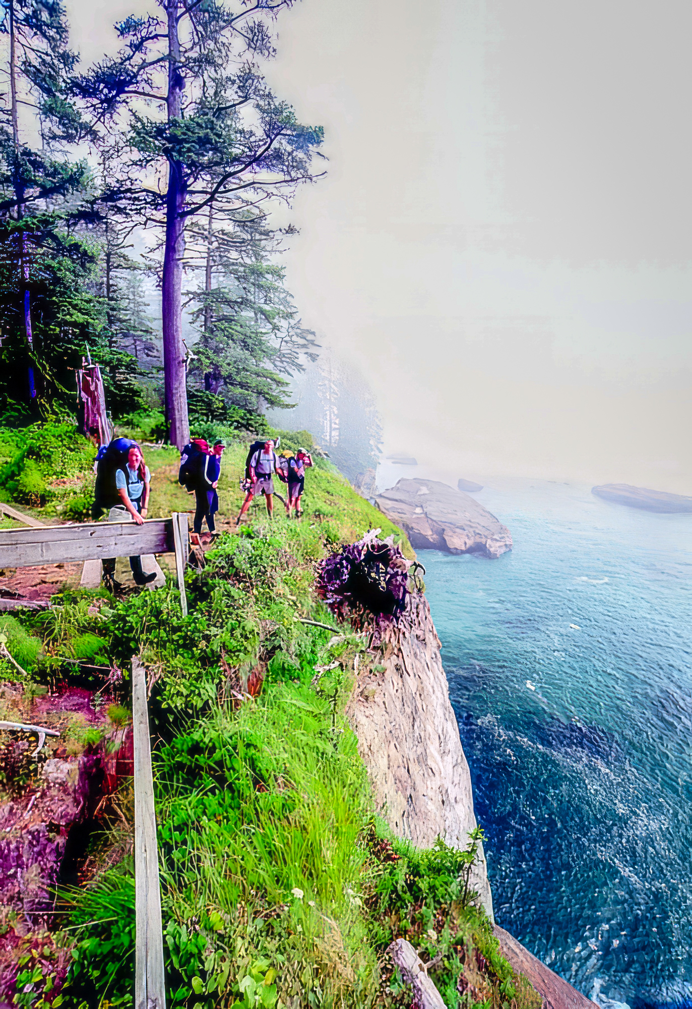 The West Coast Trail, also known as the WCT, is a 75 km (47 mi) hiking trail that stretches along the rugged and scenic coastline of Vancouver Island. Originally used as a telegraph line in the late 1800s, the trail was then used by the Canadian government as a life-saving trail for shipwrecked survivors along the treacherous coastline. In 1973, the West Coast Trail became a part of the Pacific Rim National Park Reserve, and it has since been a popular destination for hikers from all over the world.