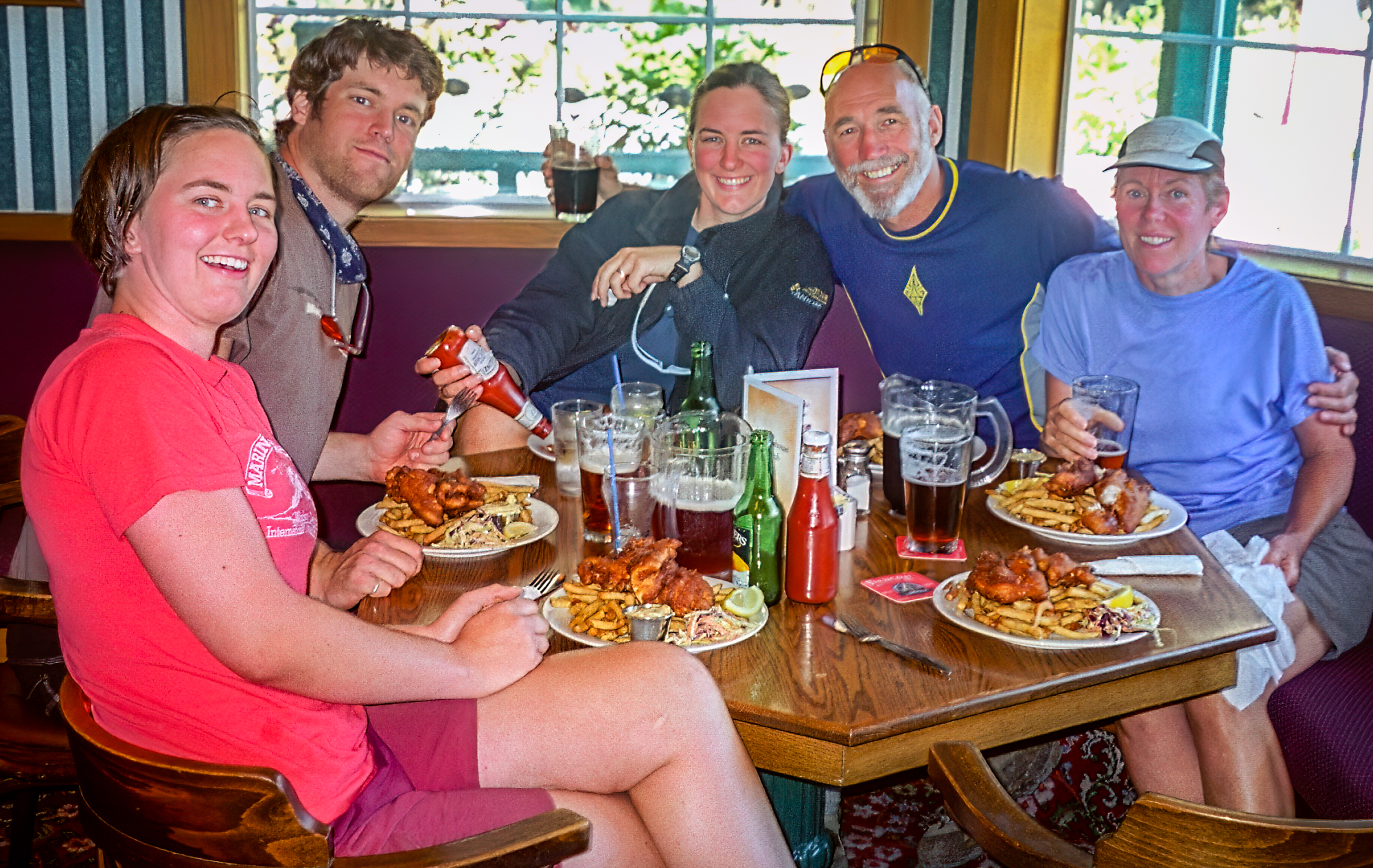 Disembarking from the ferry shuttle at the landing, we loaded ourselves and our gear into the back of a pickup truck, embracing the laid-back charm of this small coastal town. To commemorate our unforgettable trek, we decided to indulge in a well-deserved feast at a local eatery. Fish and Chips was the perfect choice, a culinary delight that showcased the region’s bountiful seafood. And what better way to celebrate the culmination of our adventure than with a cold, crisp beer, perfectly chilled to quench our thirst and enhance the flavors of our meal. With every bite and sip, we toasted to the memories we had created, grateful for the moments of pure bliss that had unfolded along the trail. Click on thumbnail to view image