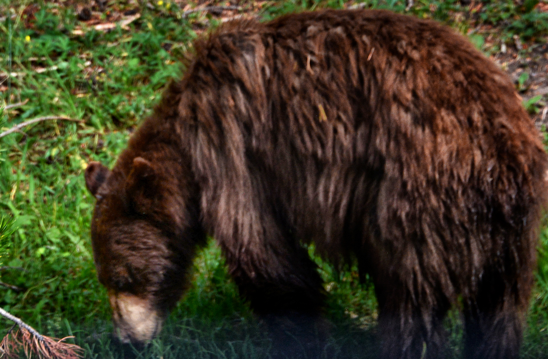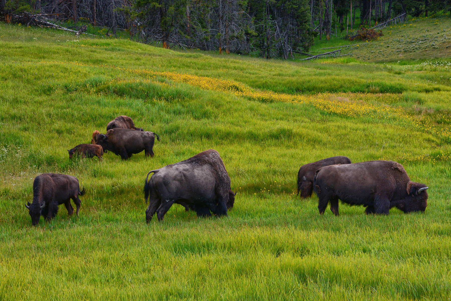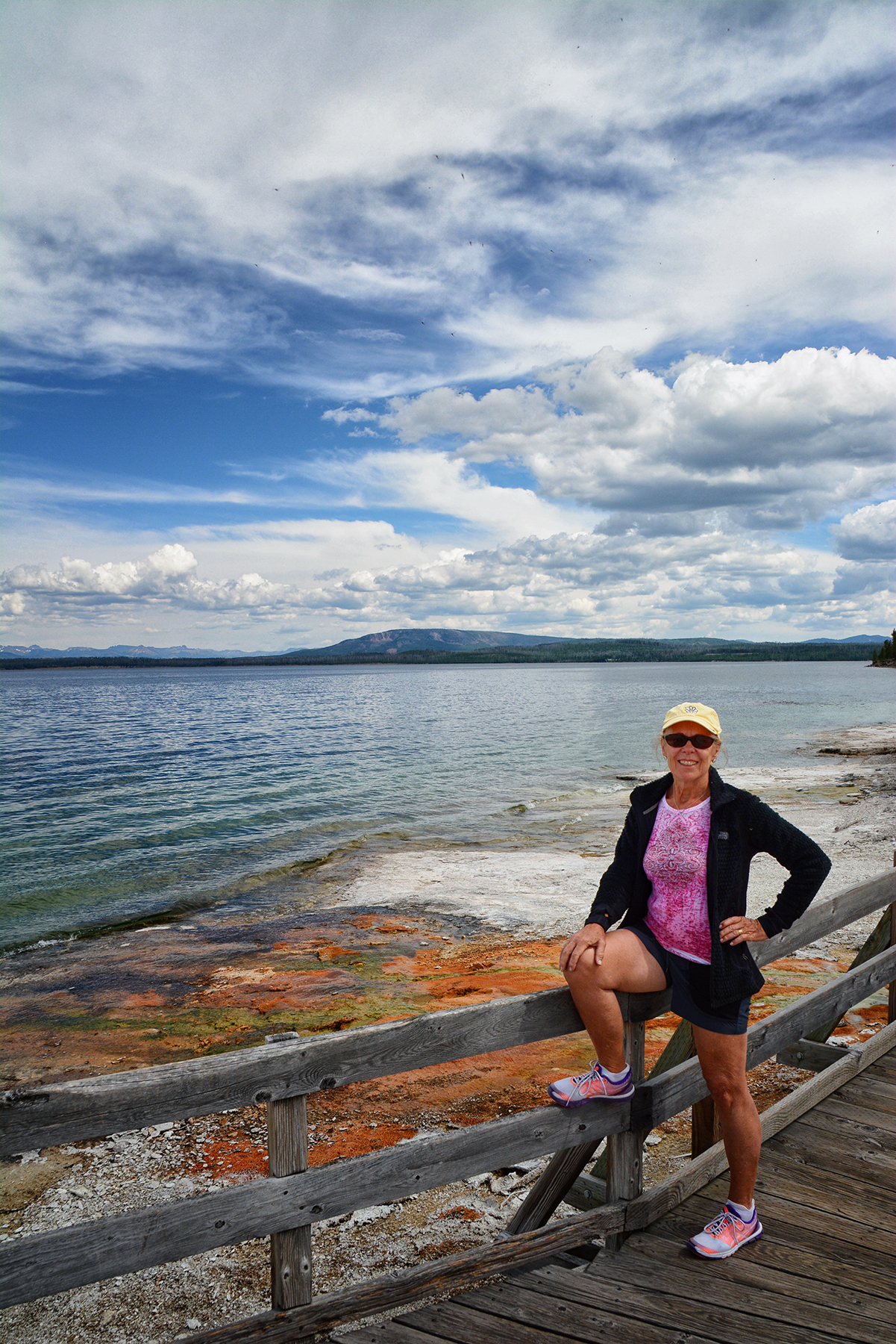We made our way back to the car and continued along the road to West Thumb, one of the smallest geyser basins in the Park. Because it is located along the shores of Yellowstone Lake, it is the most scenic. We walked along the boardwalk and viewed all the different geysers and hot springs, in multiple colors of blues, greens and yellow. Yellowstone Lake is the largest body of water in the Park and is 7,732 feet above sea level, making it the largest freshwater lake above 7,000 feet in North America. The Lake covers 136 square miles with 110 miles of shoreline. We had great views of the lake as we drove along the west shoreline to the Hayden Valley, which is the best location to see wildlife. We were fortunate today as it was getting near dusk, and we saw a herd buffalo and a grizzly bear along the side of the road. There was a traffic jam of cars stopping to take photos of the bear while the Rangers were trying to keep the traffic flowing. What a fabulous day we had, there is no place on earth like Yellowstone National Park.
