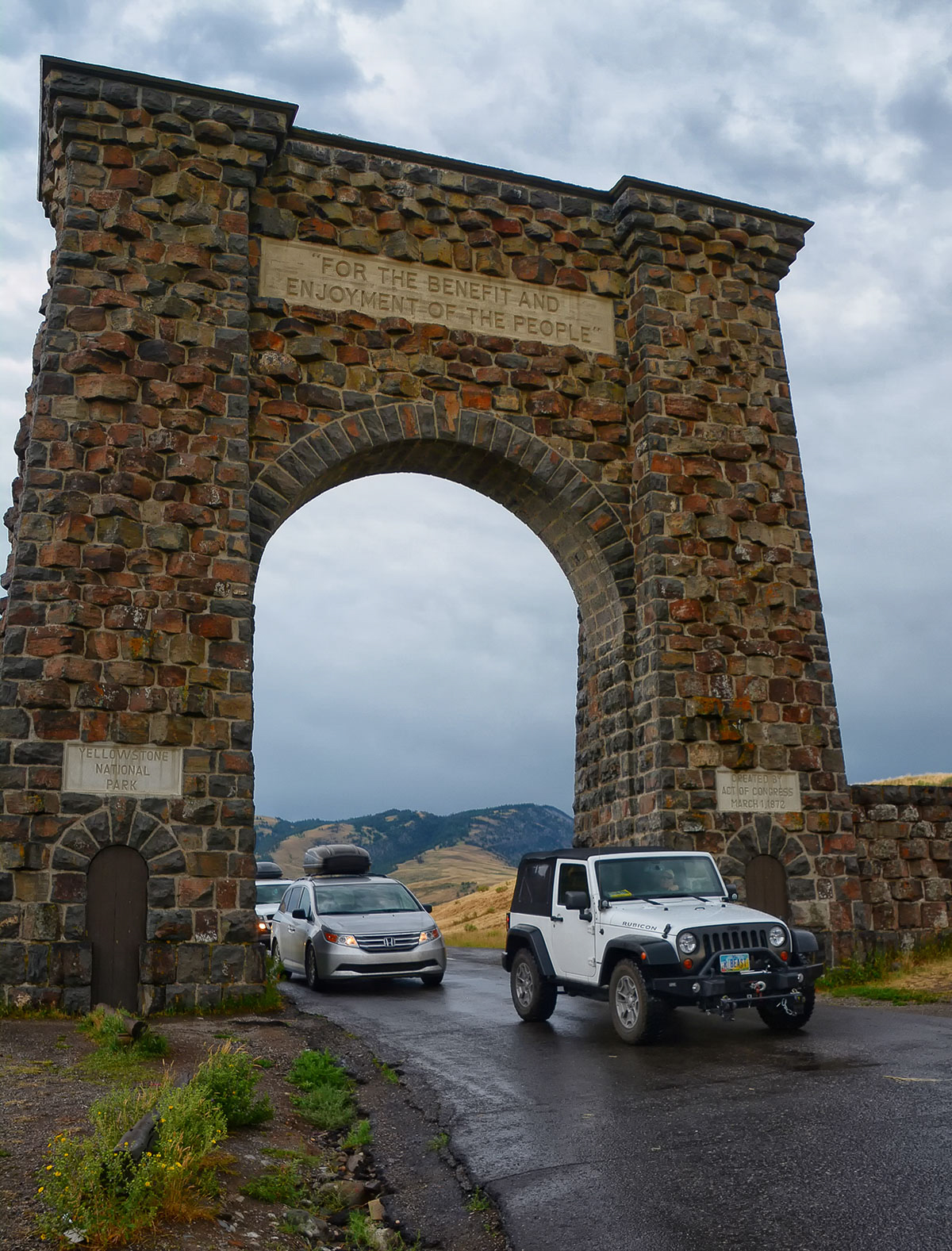 The next day, July 29th, we were excited to take our very first trip into the famous Yellowstone National Park, designated the world’s first national park in 1872 by a President and Congress who had the courage and vision to recognize that the 2.2 million-acre area contained unique features that should be preserved forever. We drove from Livingston through the beautiful Paradise Valley to Gardiner, the Northern Gateway to the Park, that straddles the Yellowstone River. It was officially put on the map in the 1880’s when the first tourists arrived from Livingston to experience the Park. From Gardiner we drove through the Roosevelt Arch inscribed “For the benefit and enjoyment of the people”, it has marked the park entrance road since 1903 when President Teddy Roosevelt delivered the dedication speech for the arch to an estimated 5,000 people.