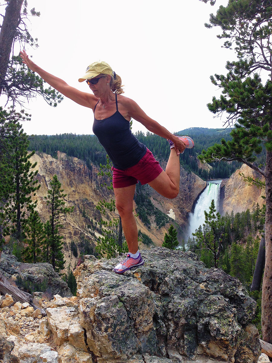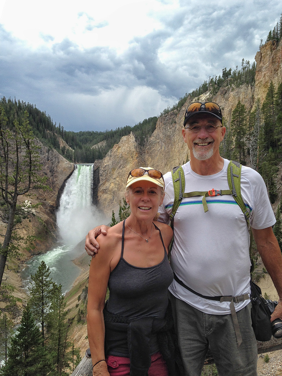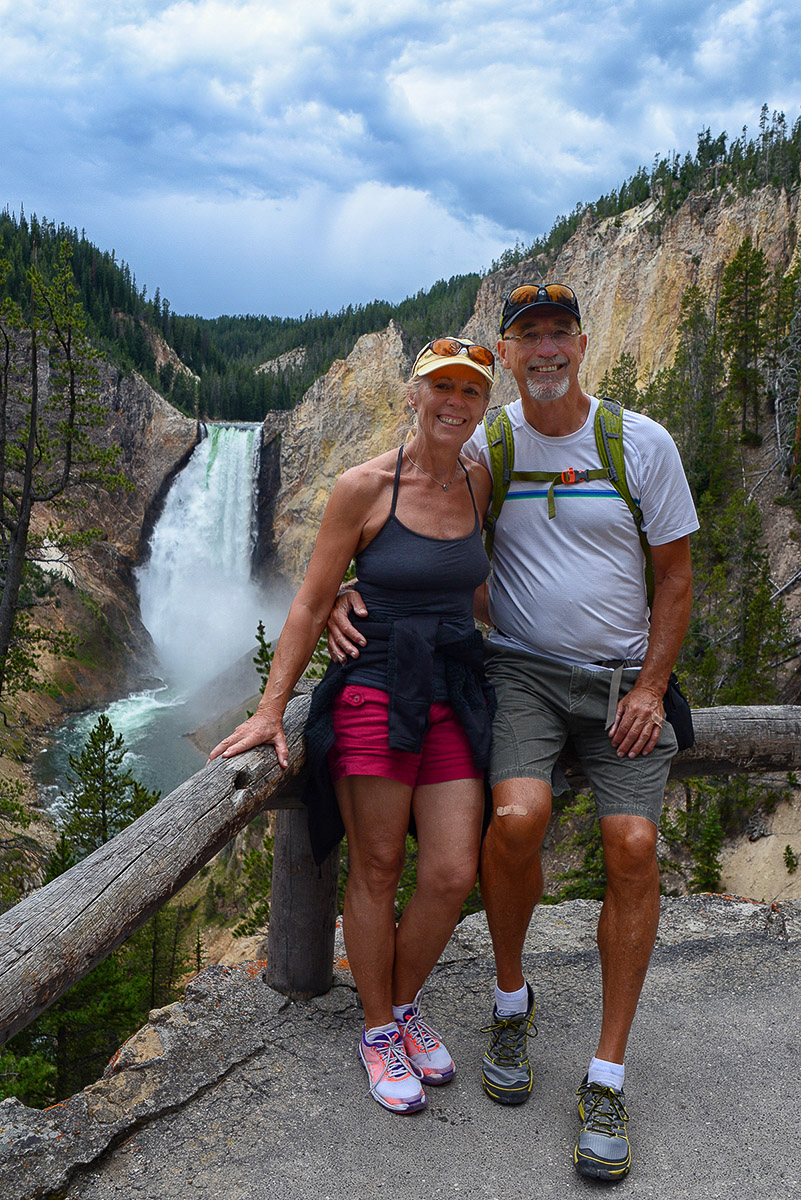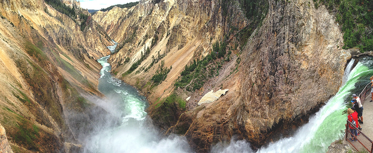 At Red Rock Point, we took a steep but paved trail descending a half mile in a handful of switchbacks to a lower view point closer the the Falls. Not as crowded here so we took a lot of photos and a selfie. From this spot we noticed some people on the Uncle Tom’s Trail across the canyon looking like ants compared to the waterfall. So we headed to the west side of the Canyon and our first stop was to Artist Point, where we were able to get that classic photograph of the Yellowstone River cutting through the Grand Canyon of the Yellowstone River with the Lower Falls as the back drop.