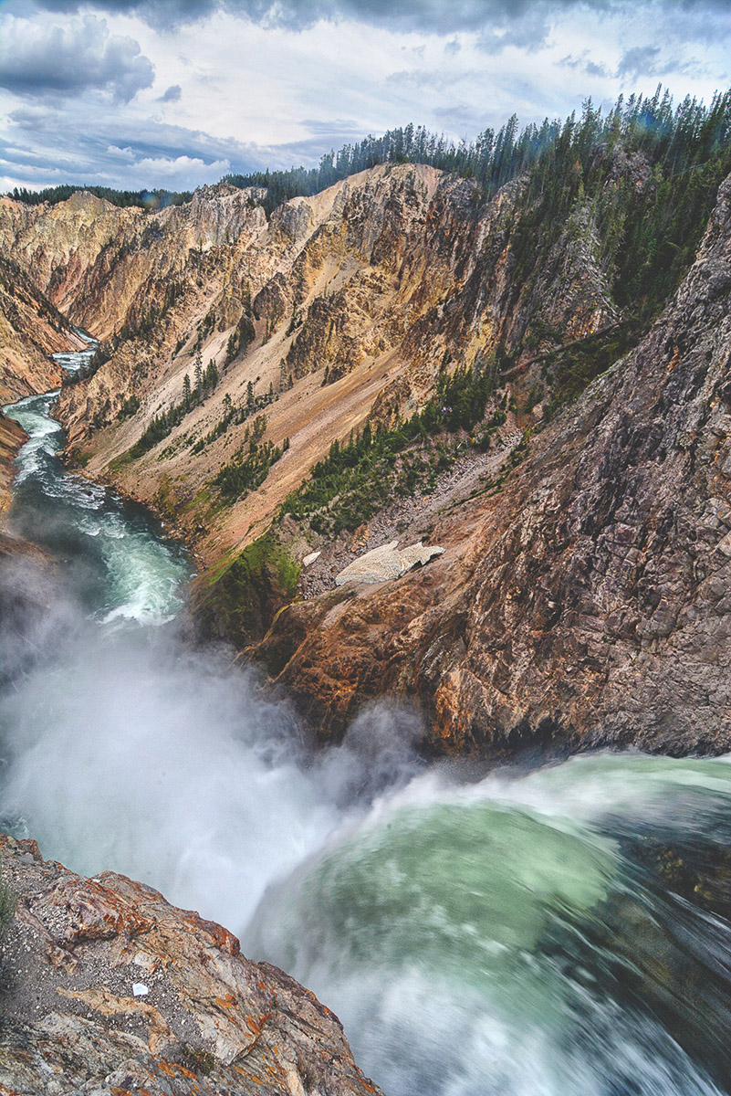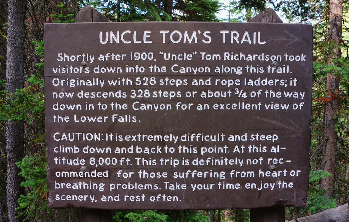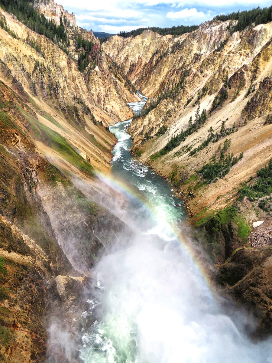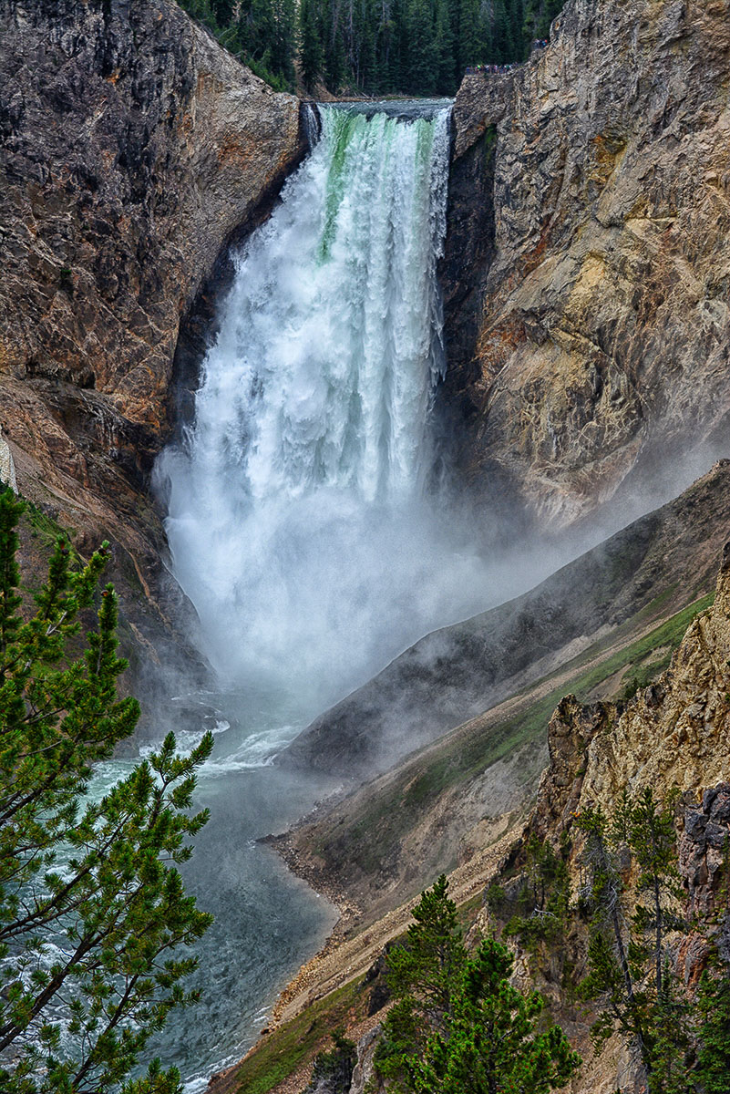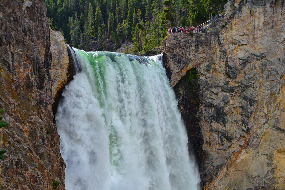 Next stop was to Uncle Tom’s Trail built in 1898 by ‘Uncle’ Tom Richardson, who led visitors on tours of the Falls in 1903. Today the path is still a strenuous hike dropping 500 feet, descending 328 metal grate steps hugging the steep cliffs to the an overlook where we were almost face-to-face with the Lower Falls. We then hiked to the edge of the dramatic brink of the Upper Falls and stared down at the thundering 109 foot waterfall. It is significantly smaller than the Lower Falls but they’re just as breathtaking, and the cascade of surging water looks every bit as powerful.