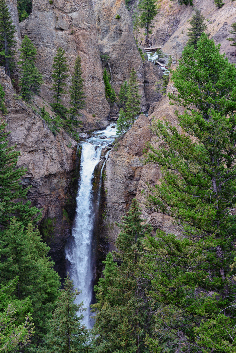 Two miles south of Roosevelt we came to Tower Falls, 132 feet in height. The name ‘Tower’ is derived from the towering volcanic formation surrounding the falls. This is one of the most beautiful falls in the Park, as you can see from the photo.