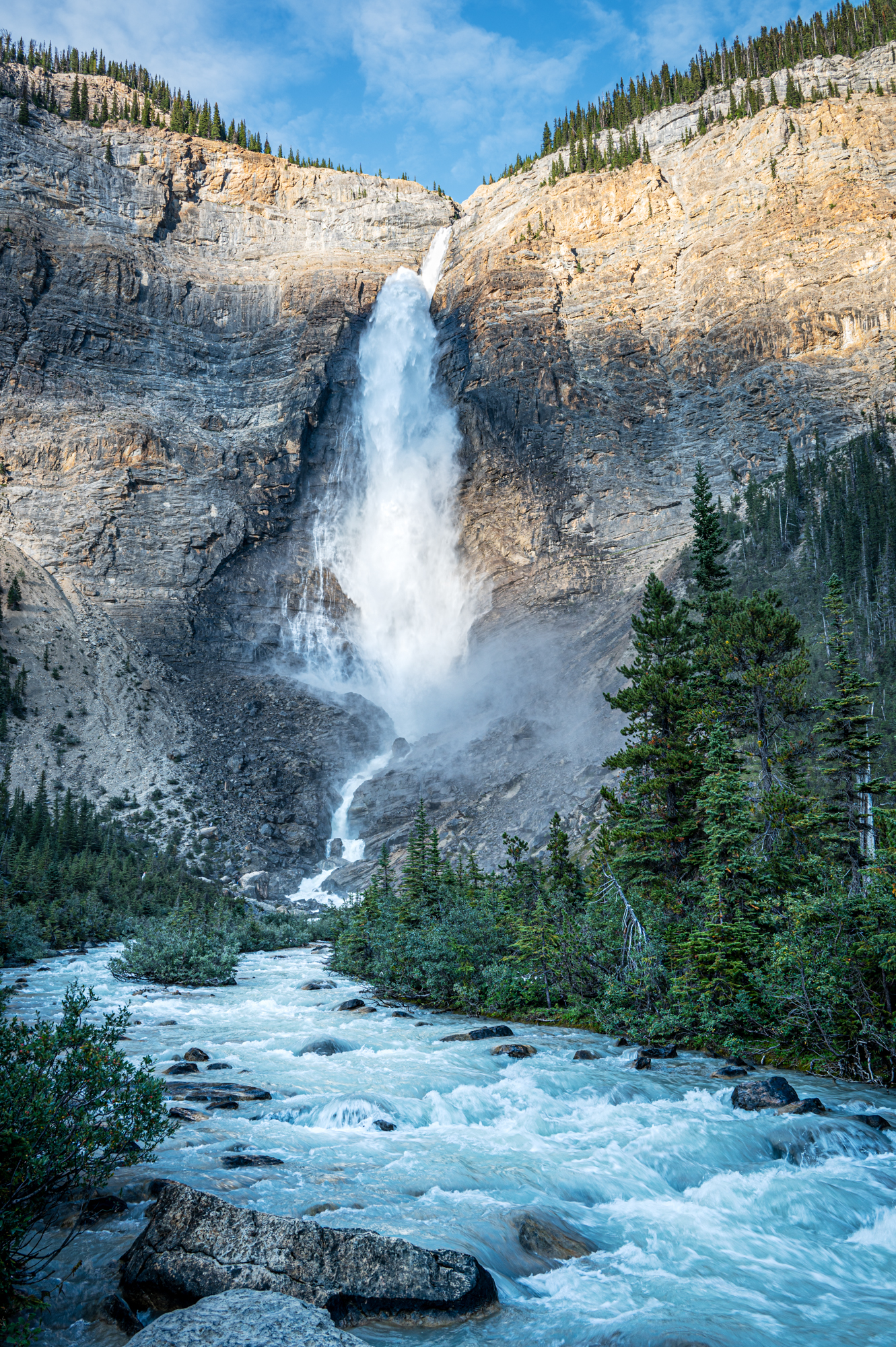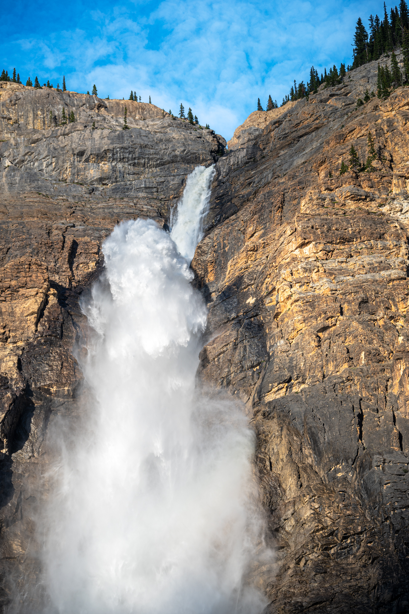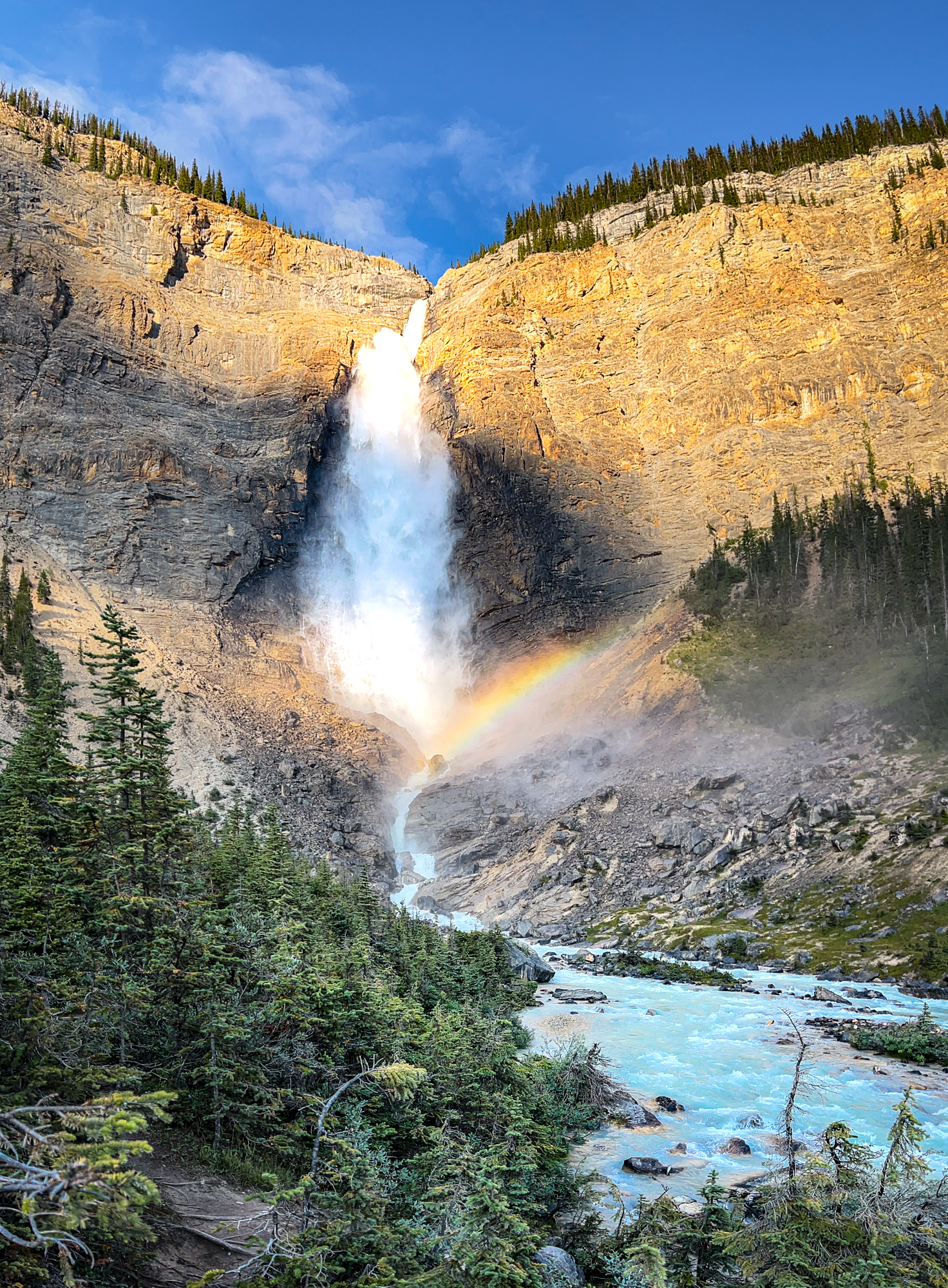 Our last stop in Yoho National Park was the majestic Takakkaw Falls. This incredible waterfall is one of the tallest in Canada, with a height of 384 meters (1,260 feet). The name “Takakkaw” means “magnificent” in the indigenous language of the area, and it is easy to see why.