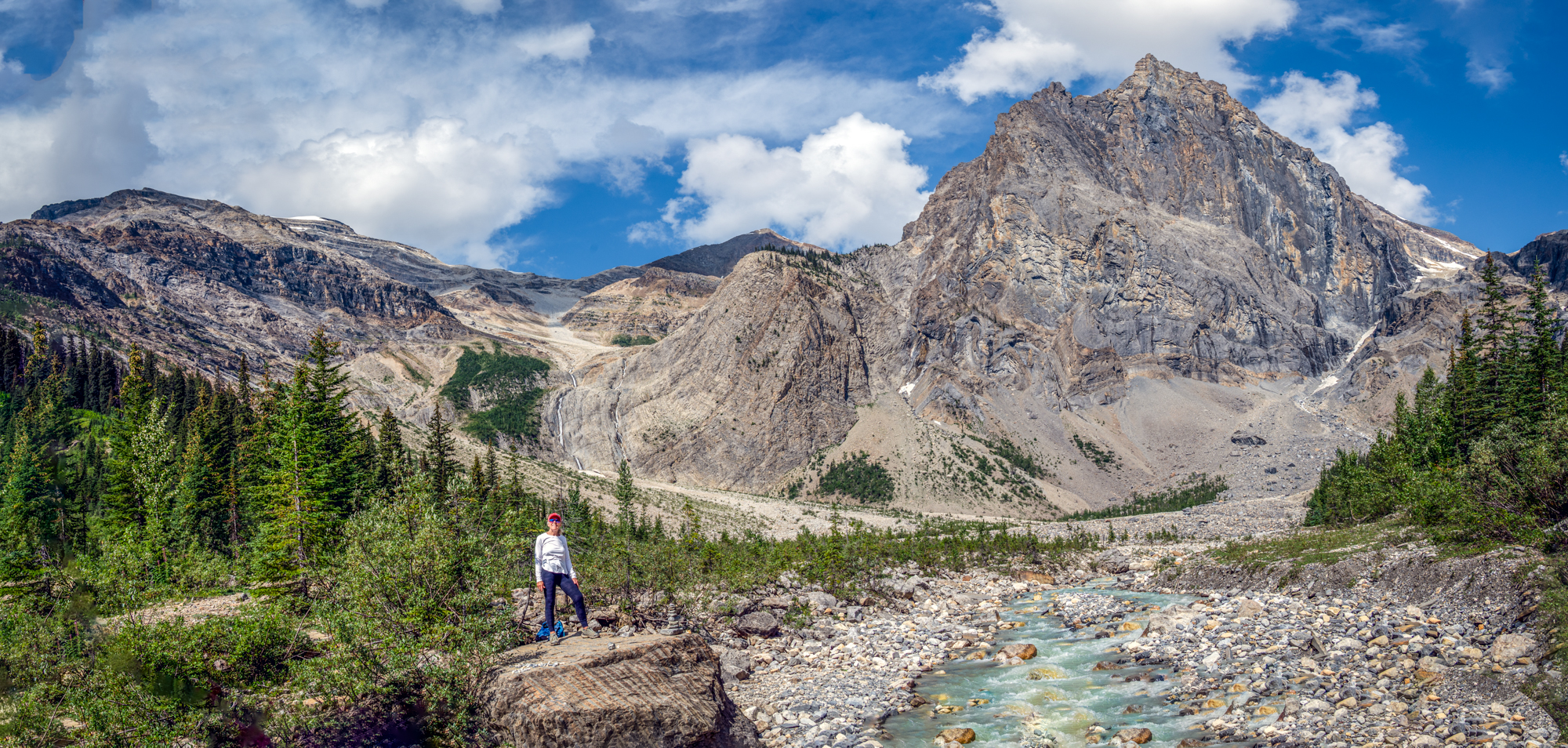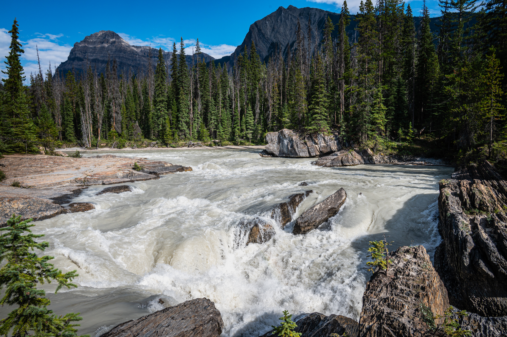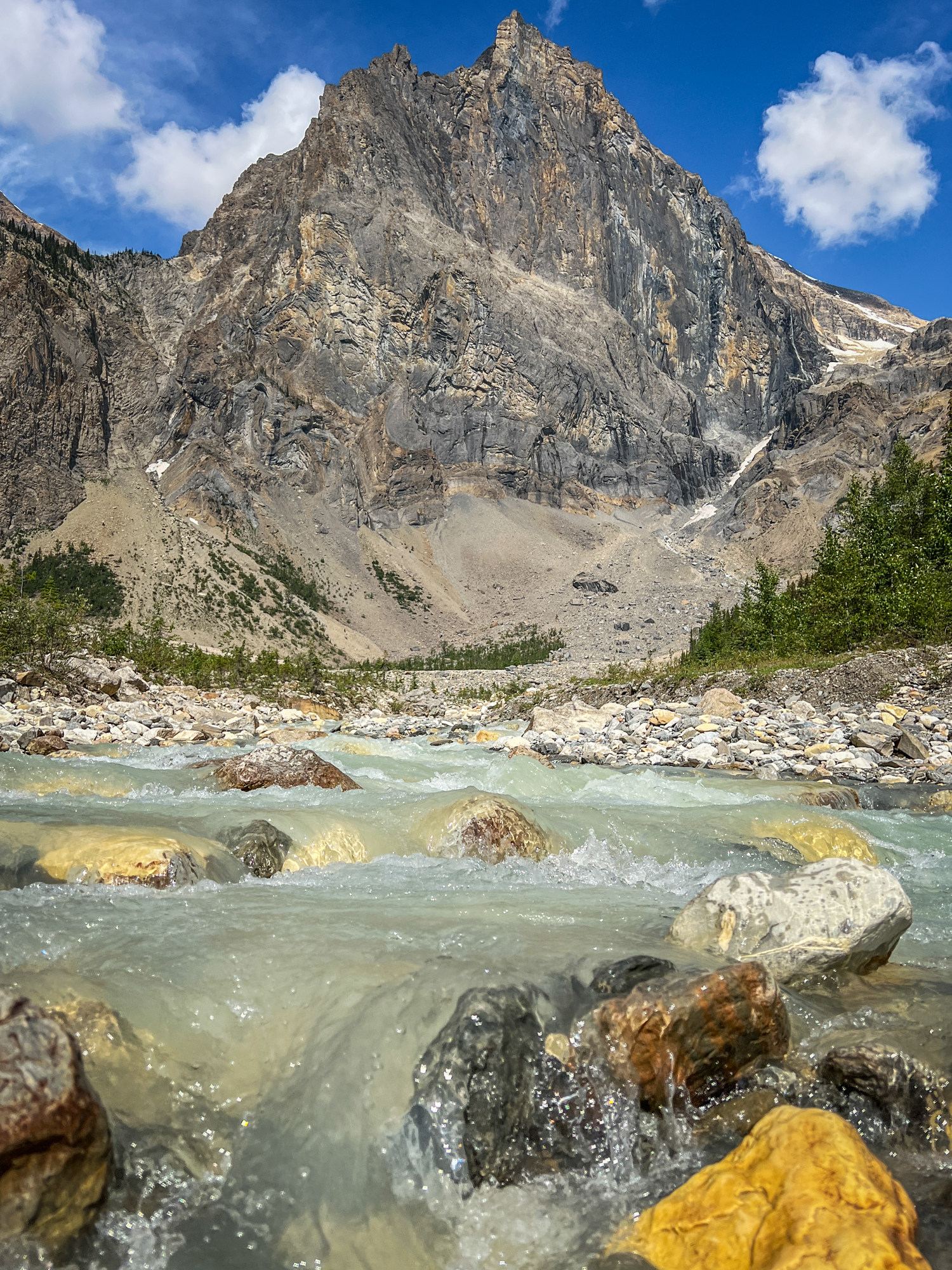 Our last stop in Yoho National Park was the majestic Takakkaw Falls. This incredible waterfall is one of the tallest in Canada, with a height of 384 meters (1,260 feet). The name “Takakkaw” means “magnificent” in the indigenous language of the area, and it is easy to see why.