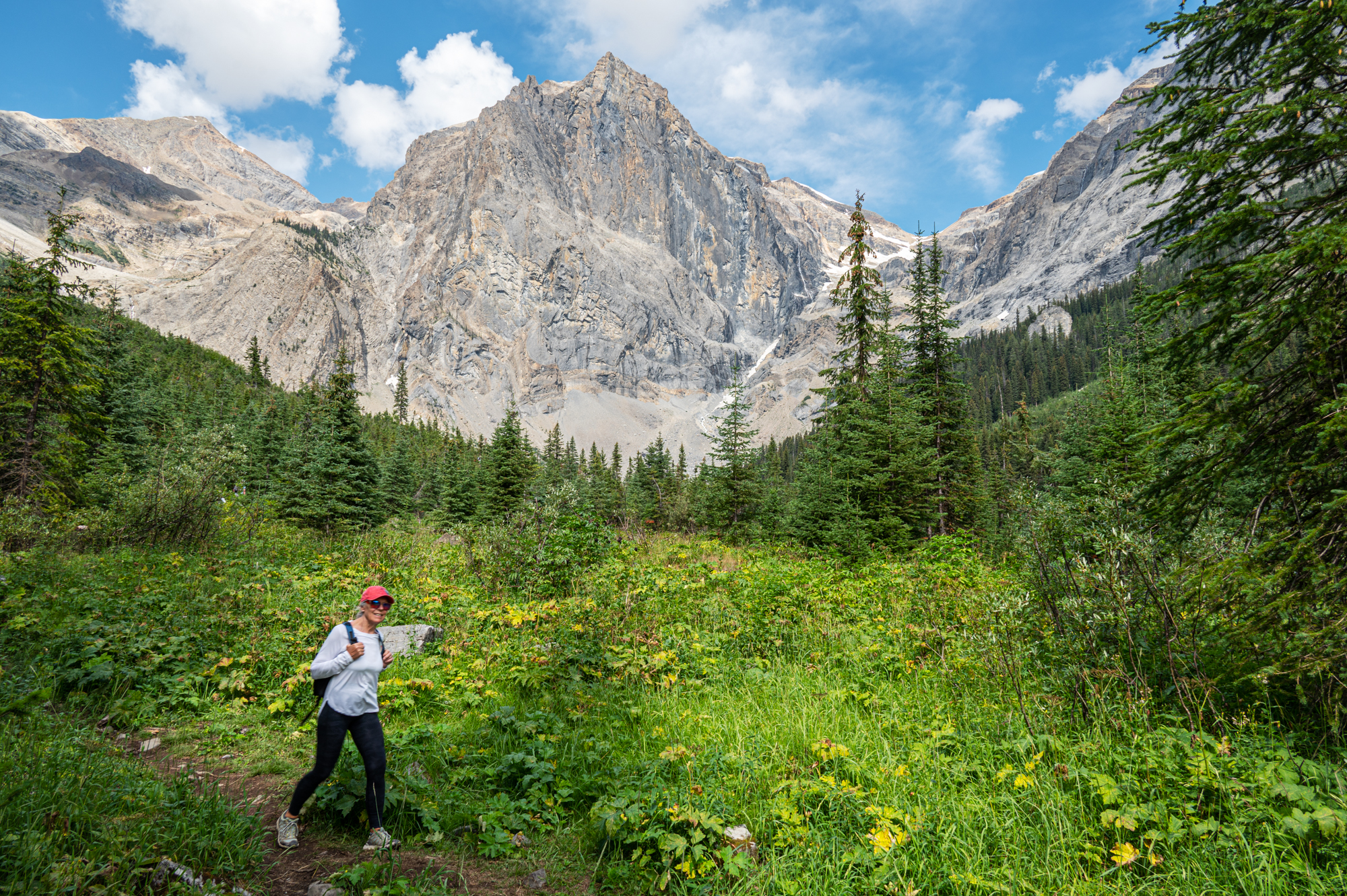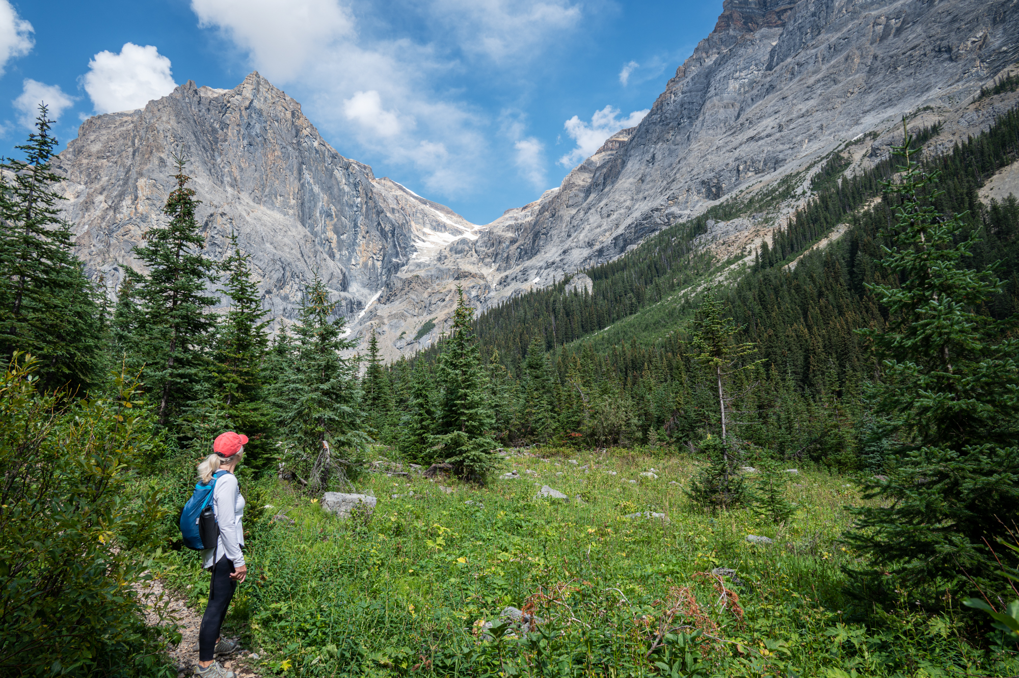 The Emerald Basin hike into the President Range is a stunning trail that takes you through lush forest and scenic views of the surrounding mountains. On this particular day, the weather was perfect for a hike, with clear blue skies and a gentle breeze. As we started our hike along the shoreline of the tranquil Emerald lake, we were blessed with magnificent views of the lake which was dotted with canoeists paddling through the emerald green water. We made our way to the end of the lake, where we took the side trail up to the Emerald Basin. The trail became steeper and more challenging, but the stunning views made it all worth it.