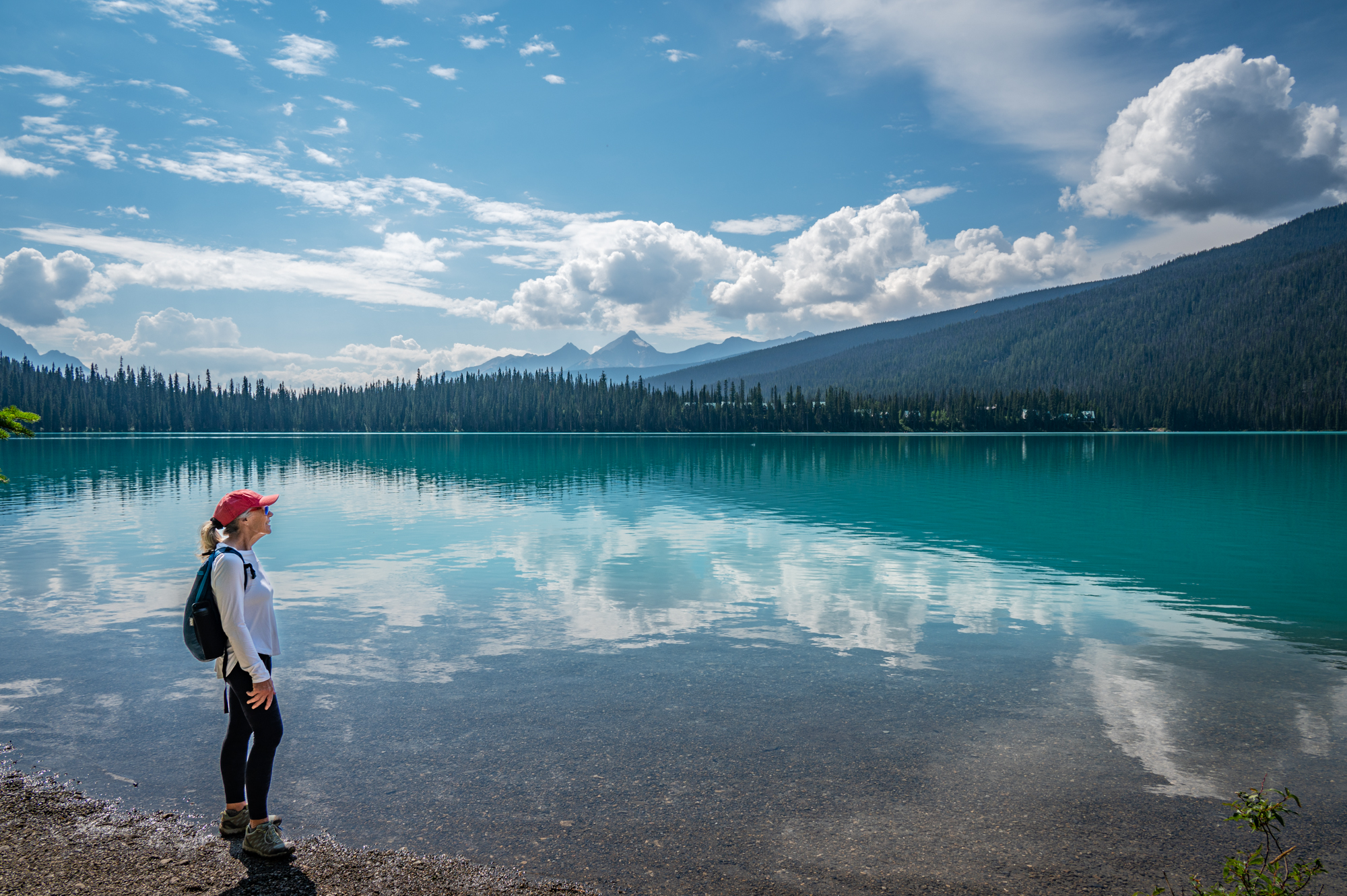 We hiked back down to Emerald Lake and continued our walk around the lake back to the Emerald Lake Lodge. The lake views and reflections were outstanding. At the lodge we had a fabulous meal and a few cold beers. On our way back to the car we watched a wedding ceremony at the edge of the lake with a string quartet playing perfect music for this idyllic setting. Click on thumbnail to view image