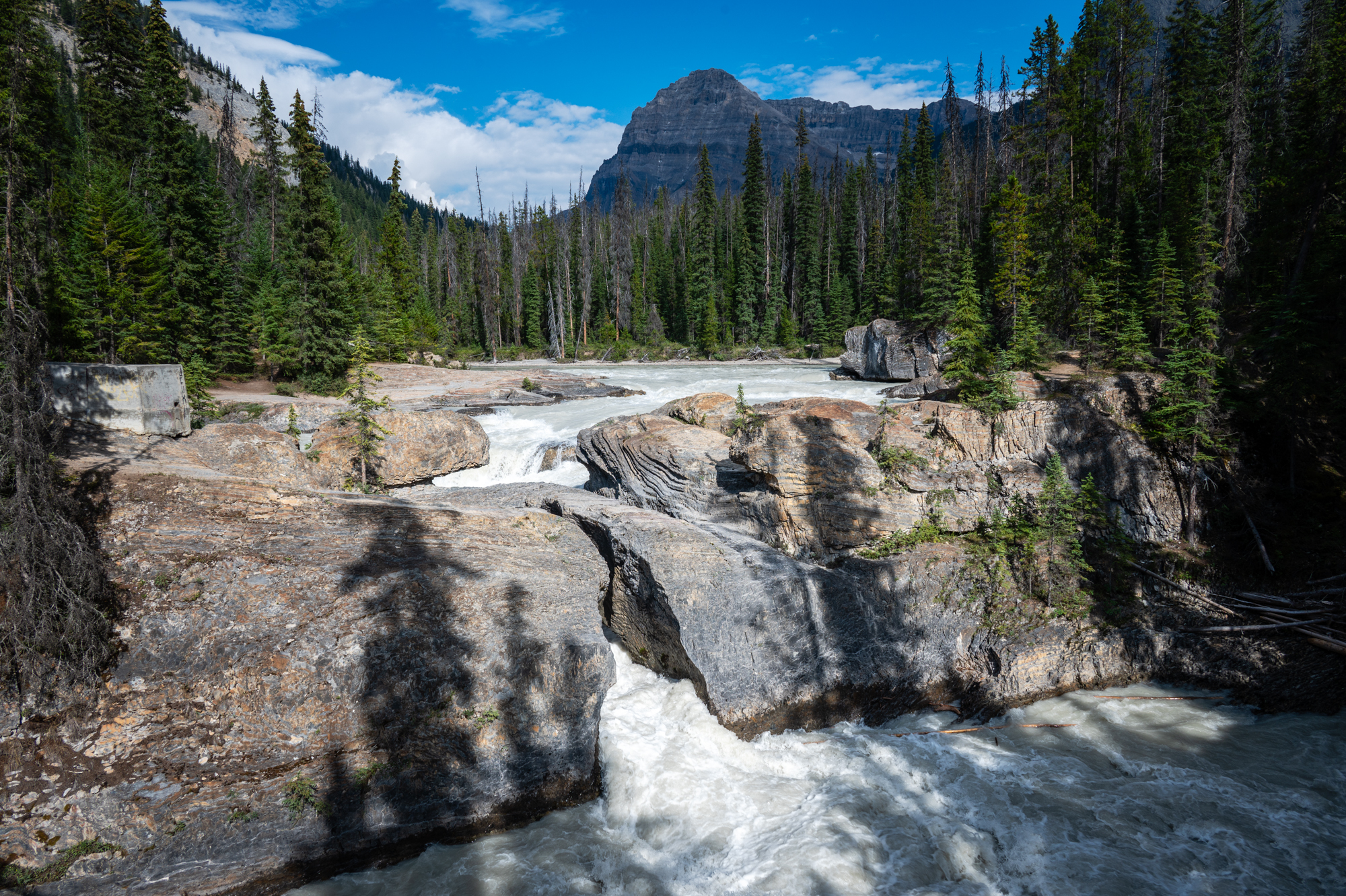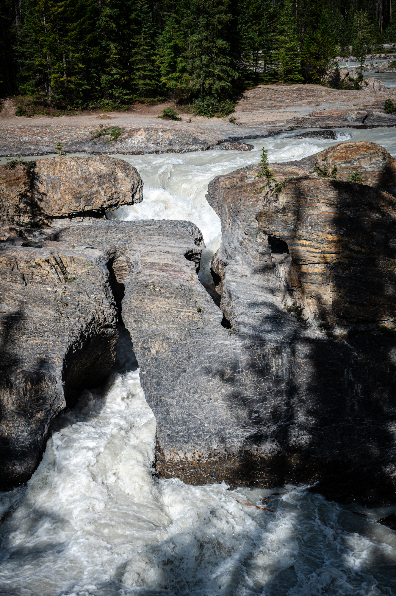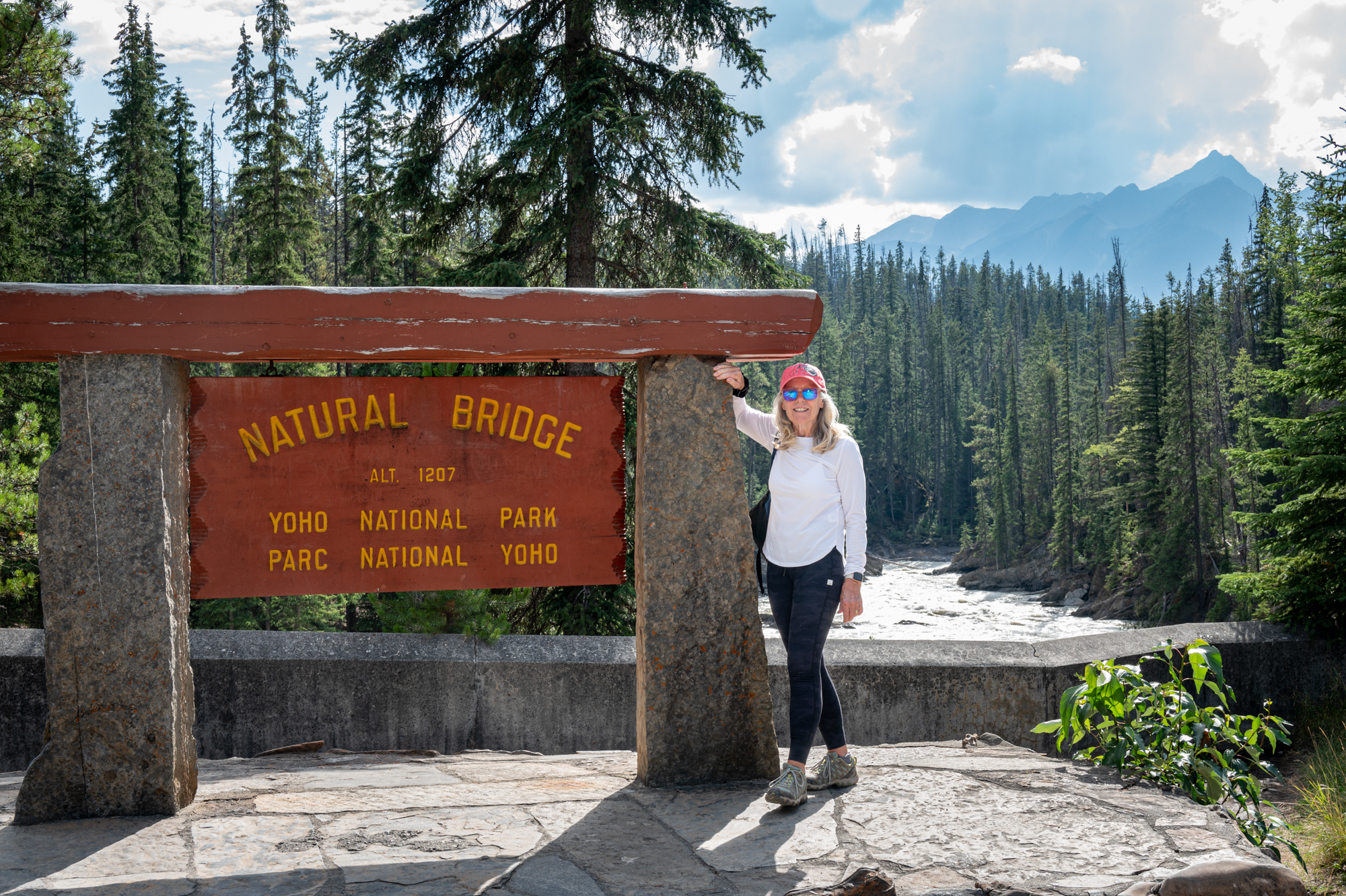 After leaving, we made a stop at the Natural Bridge, a unique and captivating geological formation. The Natural Bridge is a rock arch that was formed over thousands of years as the rushing waters of Kicking Horse River eroded away the softer rock, leaving behind the harder limestone bridge.