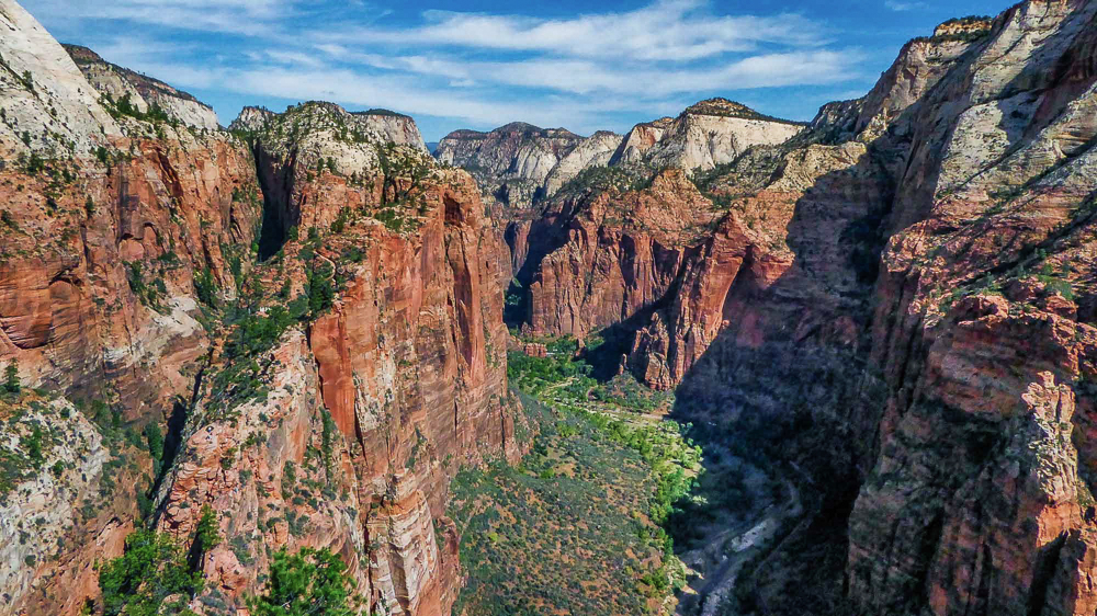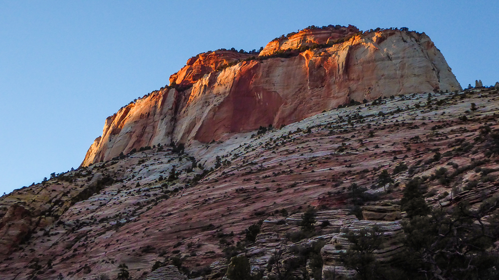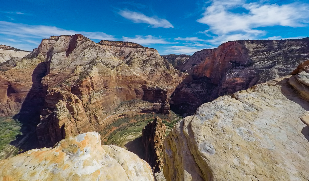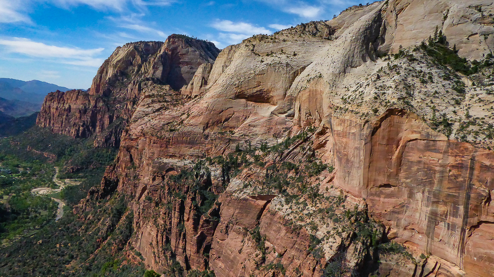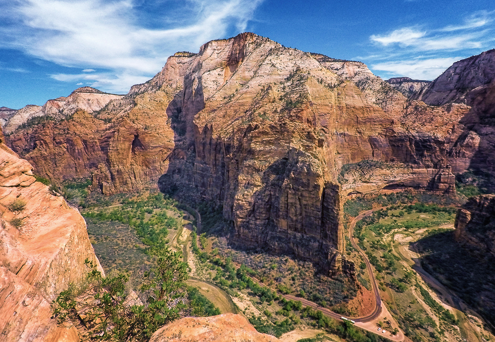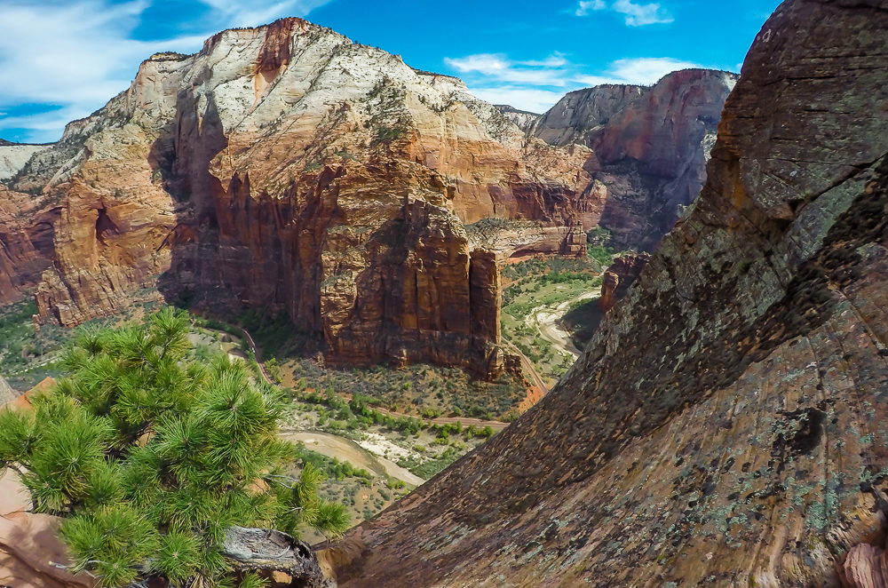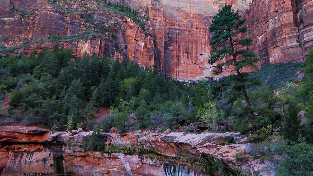 Our first hike we chose to do was Angels Landing, not for the faint hearted, more for the die harded. This is one of the most famous hikes in all of Zion National Park, and it is very challenging but worth the view. We took the shuttle to the Grotto Picnic area and crossed the river and started the hiked on a well maintained level trail to switchbacks that led us up to Refrigerator Canyon. Then on up to Walter’s Wiggles, a series of tight switchbacks onto the ridge at Scouts Lookout. A lot of people stop here and don’t experience the best part of the hike, the ridiculously steep and narrow Hogsback, using chains bolted into the stone to keep hikers from sliding over the edge of the cliff. If you get vertigo or are afraid of heights this hike may not be for you. Once we conquered the Hogsback we arrived at Angels Landing Summit, with views in all directions and particularly the view of Zion Canyon. We stayed here and ate lunch amongst the trees taking in the vistas before heading back down. Click on thumbnail to view images