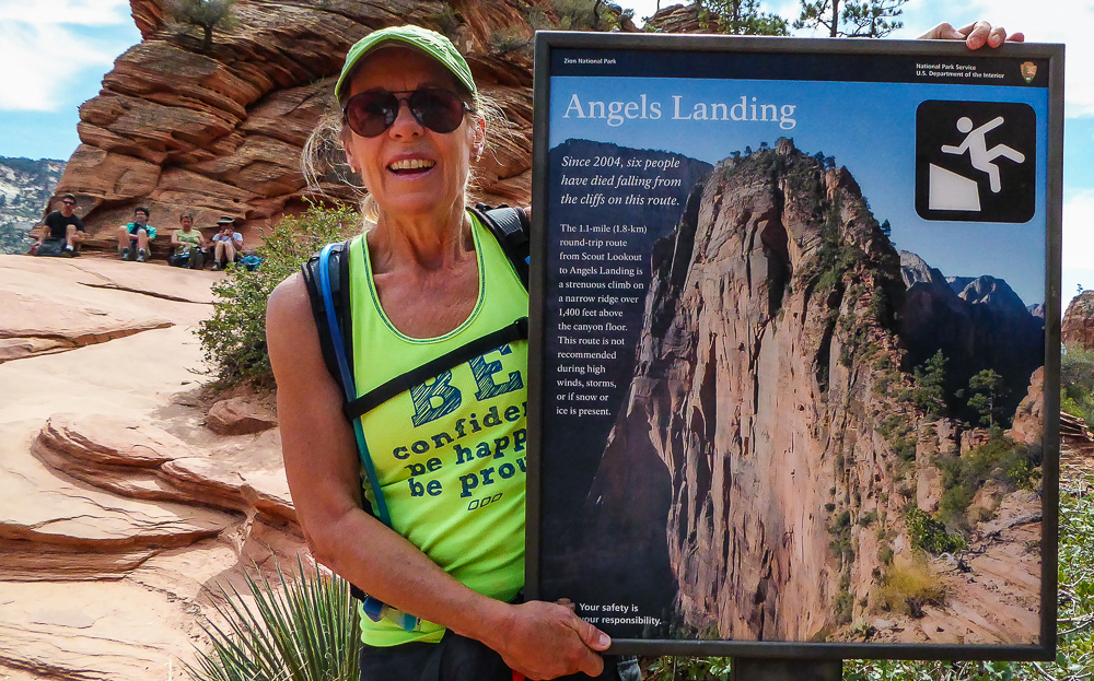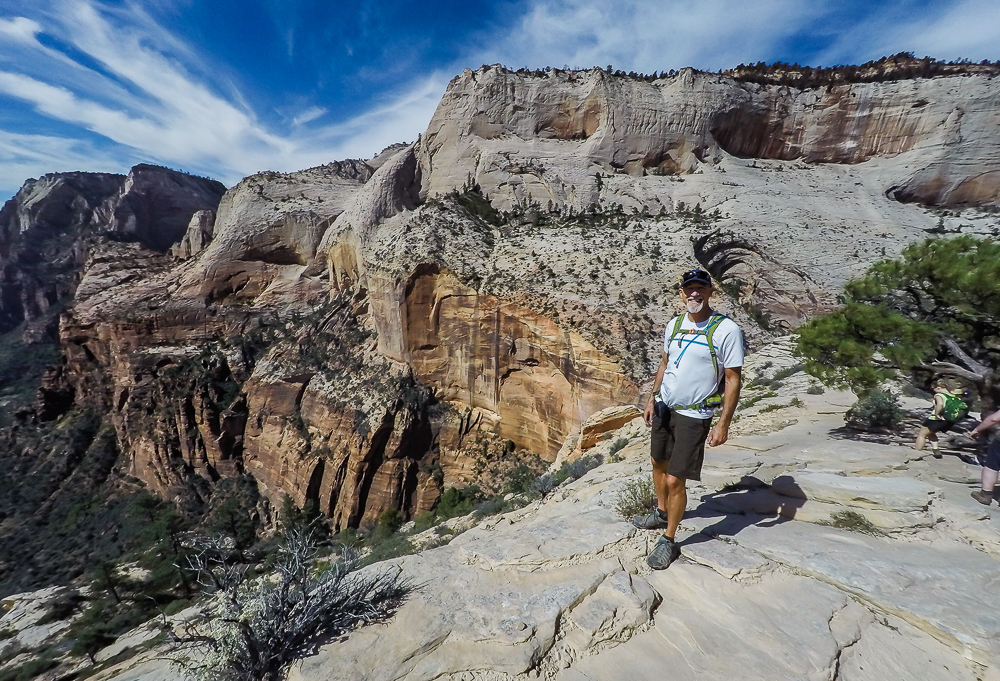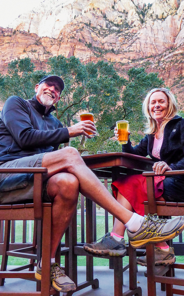 The crowds were starting to increase as we started on our way and we had to take turns holding the chains because it was so narrow and steep. We did pass some hikers who were not prepared for the strenuous hike ahead of them and especially with not enough water. We celebrated the completion of another wonderful hike at Jacks Sports Grill in Springdale before going back to our Sherpa.
